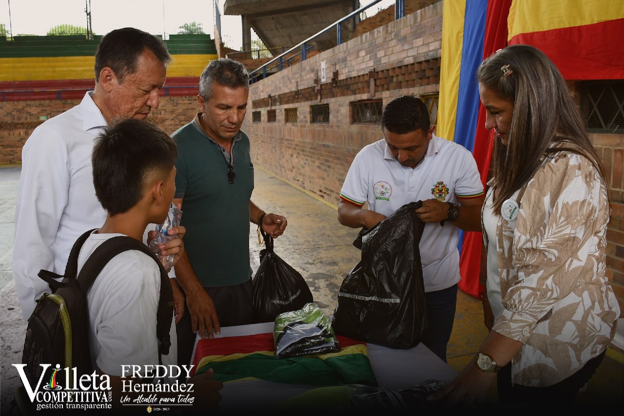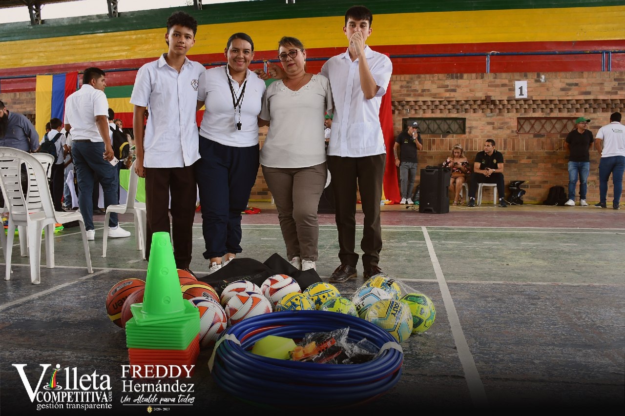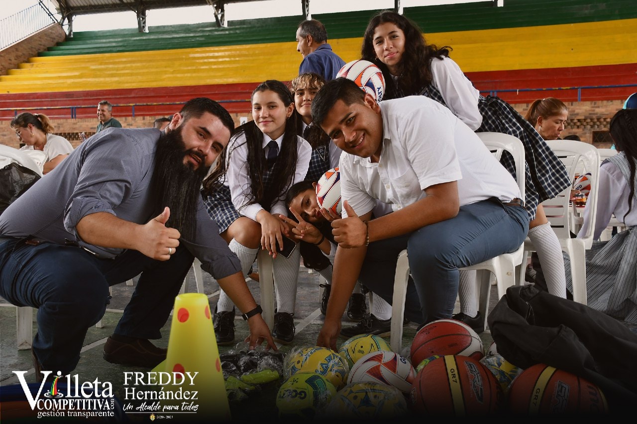la Administración Municipal y el Instituto Municipal para el Turismo, la Cultura, la Recreación y el Deporte de Villeta IMTCRD realizaron la entrega de dotaciones deportivas a las Institutuciones Educativas