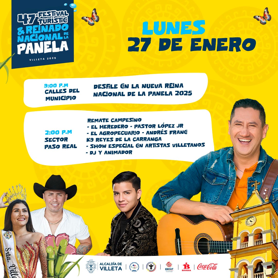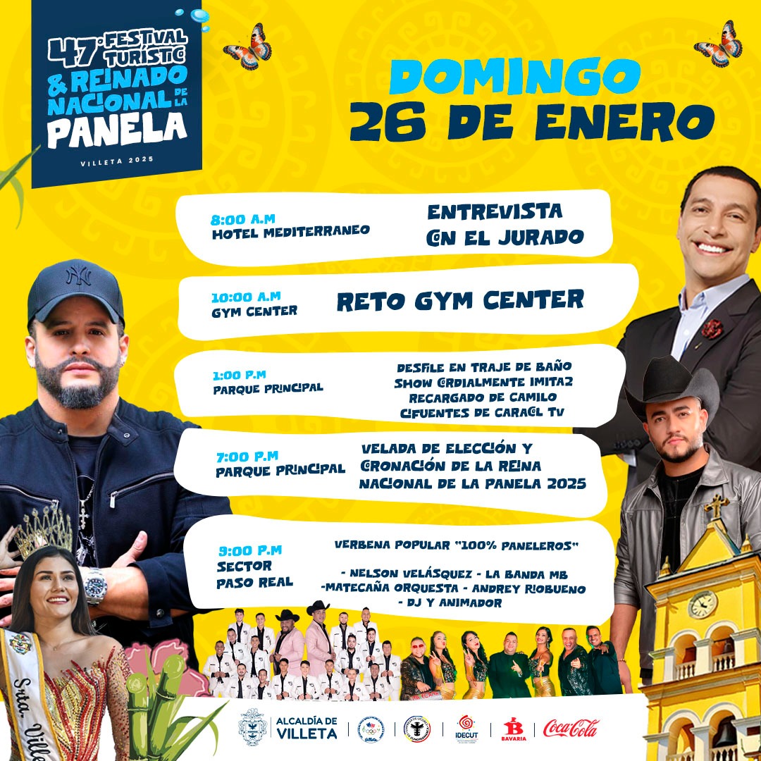 47° FESTIVAL Y REINADO NACIONAL DE LA PANELA 2025 17 Ene 2025 Turismo Villeta Noticias arte y cultura, Noticias generales, Noticias recreación y deporte, Noticias turismo Comentarios desactivados en 47° FESTIVAL Y REINADO NACIONAL DE LA PANELA 2025 47° FESTIVAL Y REINADO NACIONAL DE LA PANELA 2025