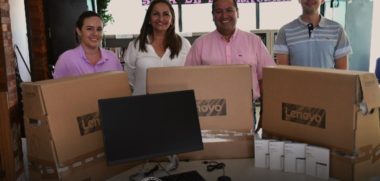 Entrega equipos de computo en la biblioteca Municipal Arcadio Plazas.